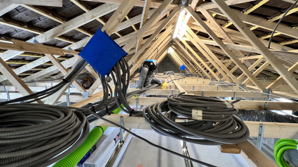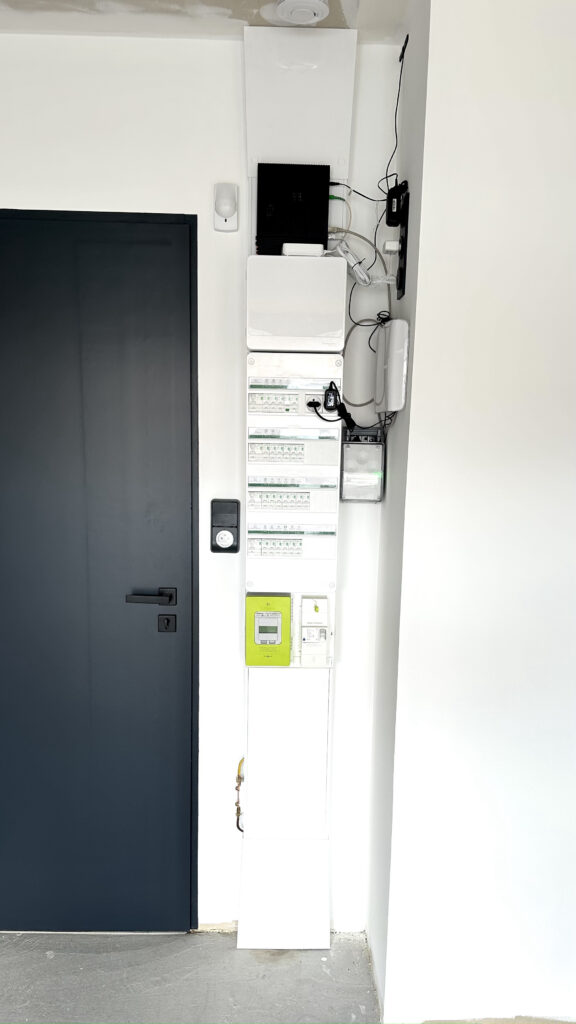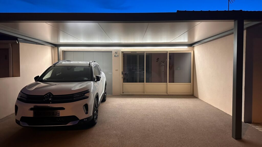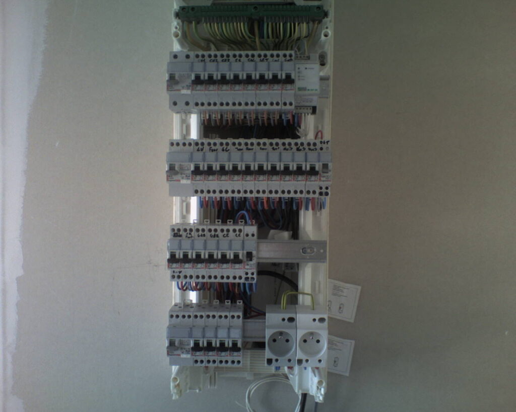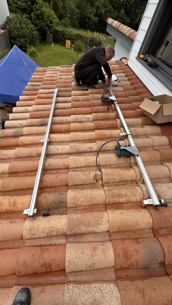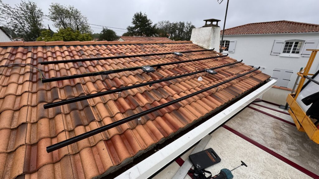 Installation d’un générateur photovoltaïque sur une toiture plate.Réalisation d’un éclairage par ruban LED étanche commandé par un détecteur de mouvements.Solution Energeasy Connect permettant de piloter les équipements connectés multimarques depuis une application unique.Réalisation d’une GTL (gaine technique logement) dans un logement neuf.Remplacement d’une motorisation de volet roulant, fourniture et paramétrage d’un contrôleur habitat Tahoma Switch de chez SOMFY.